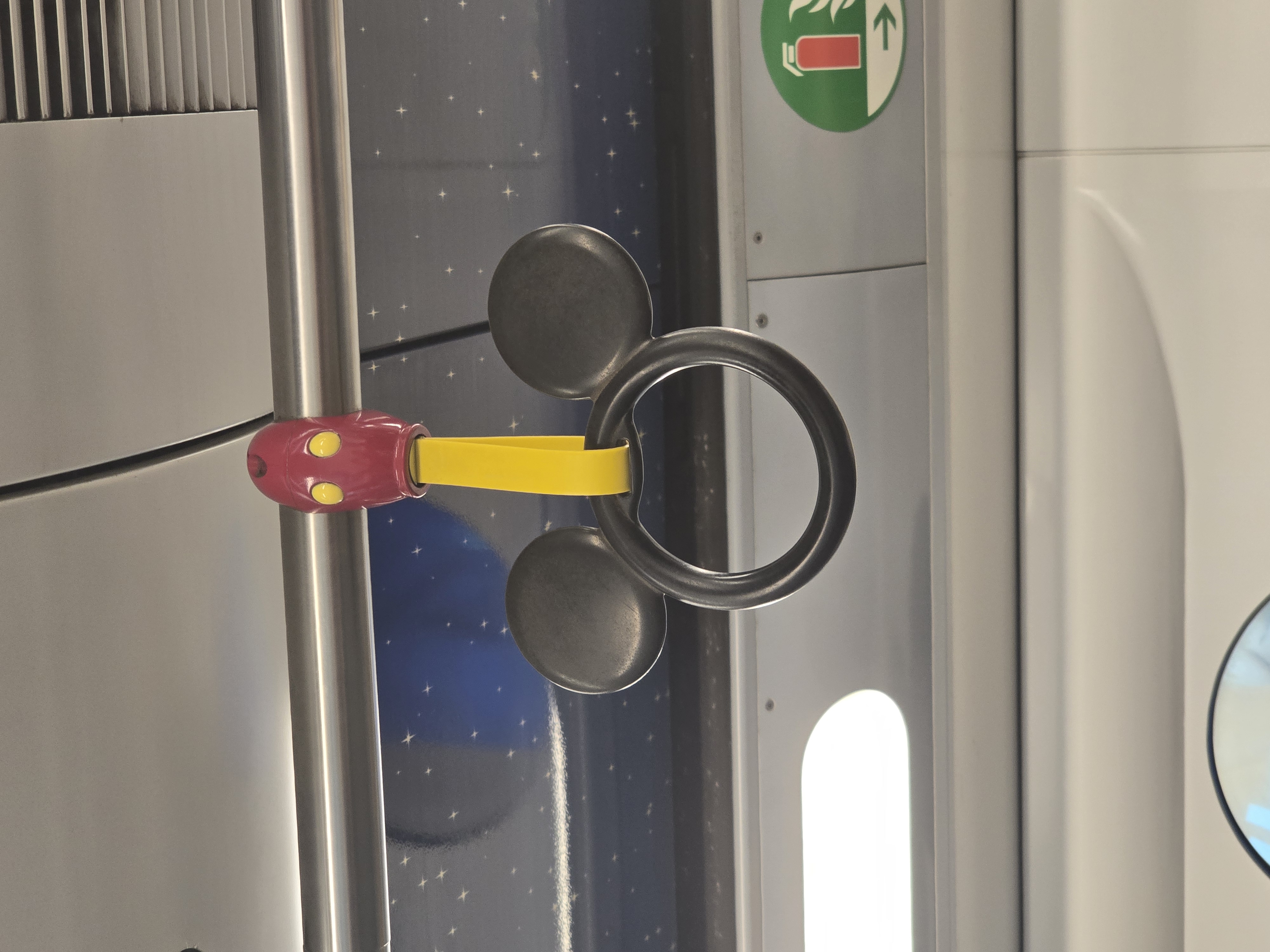 열차 객실에는 미키마우스 얼굴 형태의 손잡이가보이네요