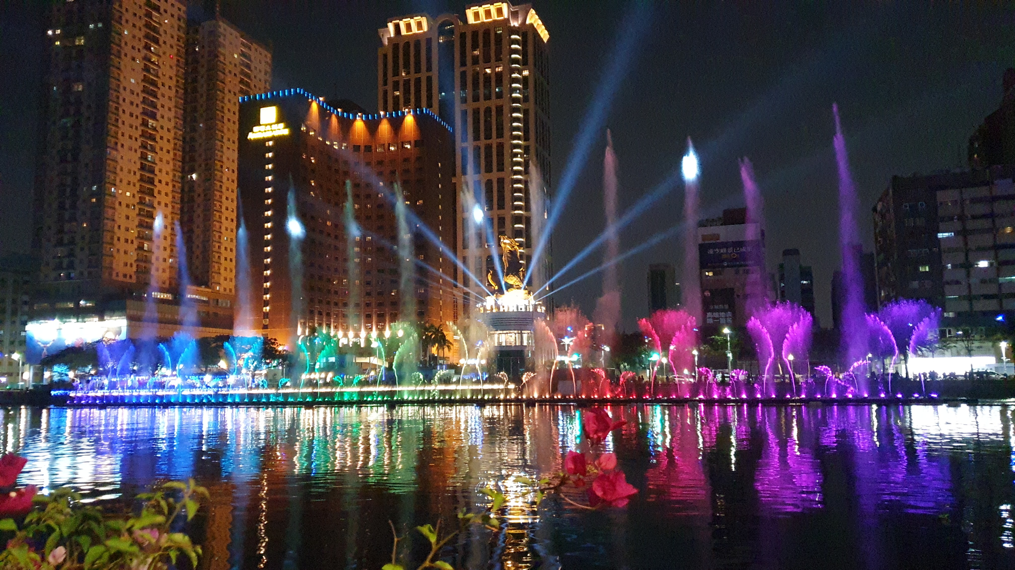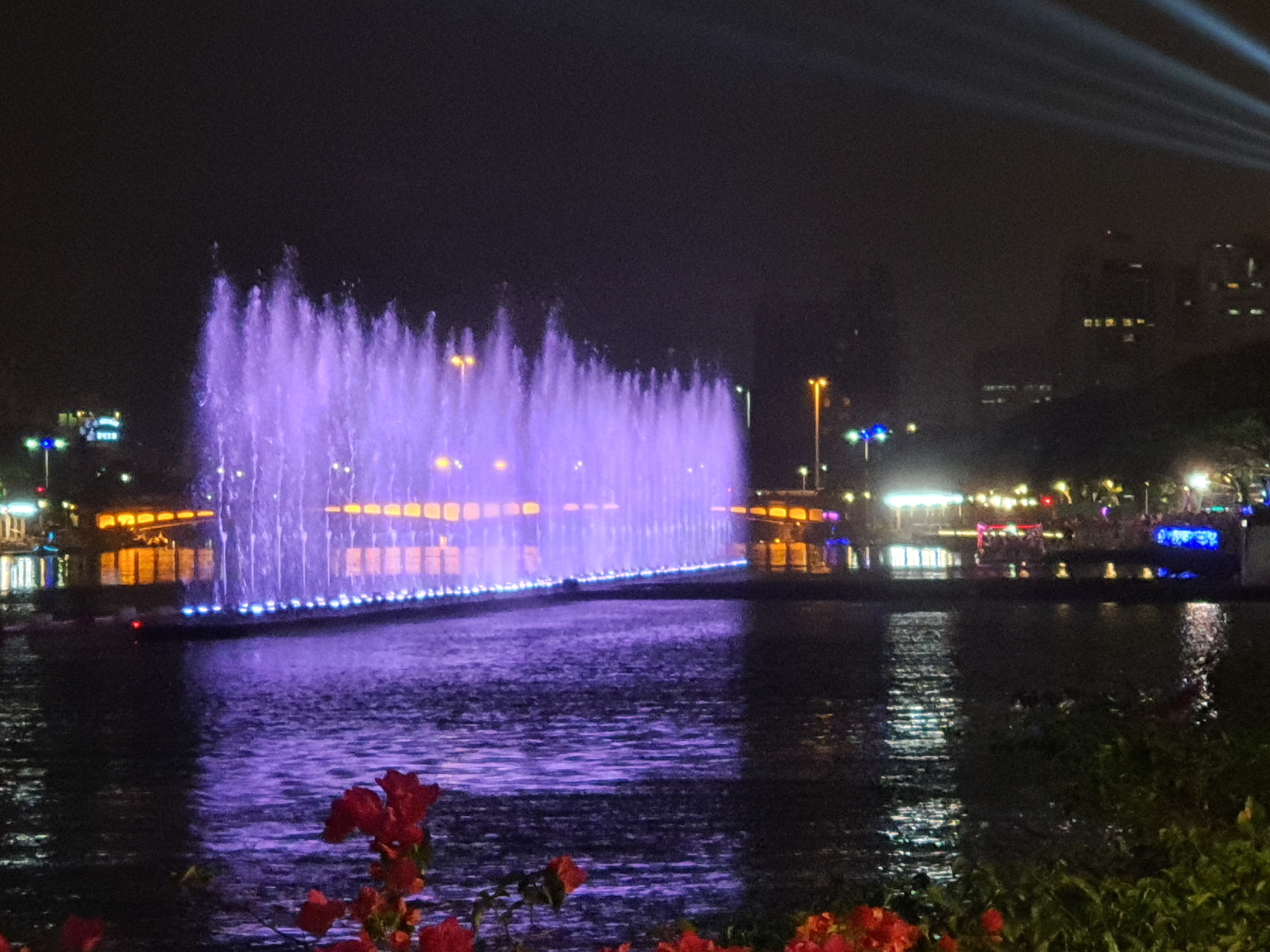 아이허강입니다. 밤이되면 은은한 조명이 켜지고 시간에 따라 분수쇼가 이루어집니다.
